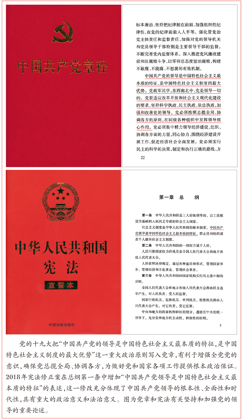 ——發揮總攬全局、協調各方的堅強領導核心作用。中國共產黨是中國特色社會主義事業的領導核心,這是我們黨成功實現領導的重要方式,也是我國社會主義政治制度優越性的一個突出特點。古人講的“六合同風,九州共貫”,在當代中國,沒有中國共產黨這樣一個堅強的領導核心是做不到的,也是不可想象的。毛澤東同志指出:“工、農、商、學、兵、政、黨這七個方面,黨是領導一切的?!编囆∑酵痉磸蛷娬{加強黨中央的集中統一領導、維護黨中央的權威。黨的十八大以來,習近平總書記反復強調,黨政軍民學,東西南北中,黨是領導一切的。在國家治理體系的大棋局中,黨中央是坐鎮中軍帳的“帥”,車馬炮各展其長,一盤棋大局分明。新中國70年來,黨的領導核心作用體現到黨治國理政的全部活動之中,貫穿到黨領導經濟建設、政治建設、文化建設、社會建設和生態文明建設各領域各方面,中國共產黨始終是全國人民戰勝風險挑戰的主心骨、頂梁柱。正因為如此,民族復興的航船才能成功闖過各種急流險灘;我們黨才能帶領人民以壓倒一切困難而不被困難壓倒的氣概,攻堅克難、化危為機,做到“青山繚繞疑無路,忽見千帆隱映來”,得到人民的信賴、擁護和支持。