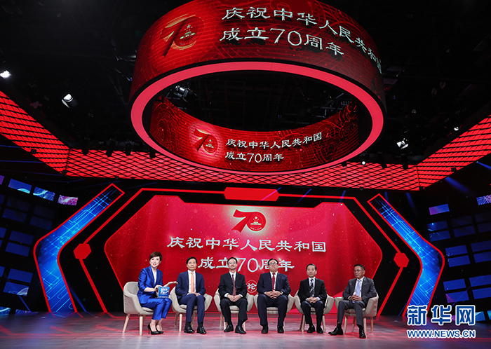 8月22日上午,由中央宣傳部、中央和國家機(jī)關(guān)工委、中央軍委政治工作部、北京市委聯(lián)合主辦,人民網(wǎng)、新華網(wǎng)、央視網(wǎng)承辦的慶祝中華人民共和國成立70周年系列論壇第二場在新華網(wǎng)媒體創(chuàng)意工場MR智能演播室舉行。圖為企業(yè)家與網(wǎng)友互動。新華網(wǎng) 焦鵬 攝