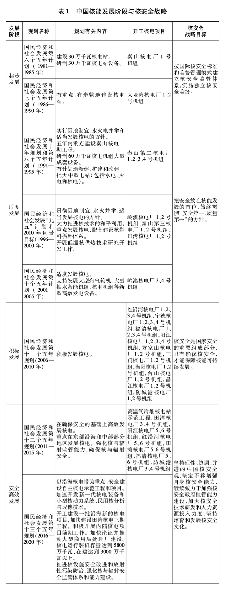 制定實施國家核安全戰略。中國將開發利用核能作為促進經濟社會快速發展、建設美麗中國的重要戰略,納入國民經濟和社會發展中長期規劃。中華人民共和國成立以來特別是改革開放以來,中國核能利用從起步發展、適度發展到積極發展、安全高效發展,始終堅持安全第一,實現發展和安全兩個目標相互促進、有機融合。
