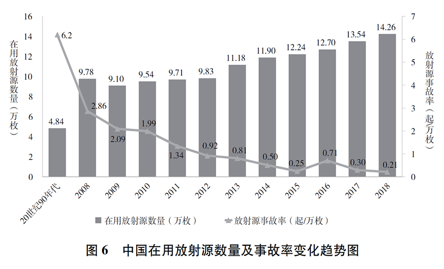 核技術利用安全水平大幅提升。對放射源實行從“搖籃”到“墳墓”的全過程動態管理,將所有涉源單位納入政府監管范圍,建立國家核技術利用管理數據庫,實施放射源安全提升行動,實現高風險移動源在線實時監控,提高核技術利用安全水平。截至2019年6月,中國在用放射源142607枚,各類射線裝置181293臺(套),從事生產、銷售、使用放射性同位素和射線裝置的單位共73070家,放射源和射線裝置100%納入許可管理,廢舊放射源100%安全收貯。放射源輻射事故年發生率持續降低,由20世紀90年代的每萬枚6.2起降至目前的每萬枚1.0起以下,達到歷史最低水平。