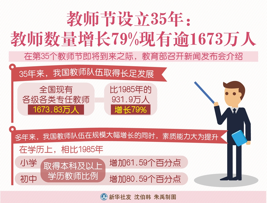 教師節設立35年:教師數量增長79%現有逾1673萬人-新華網