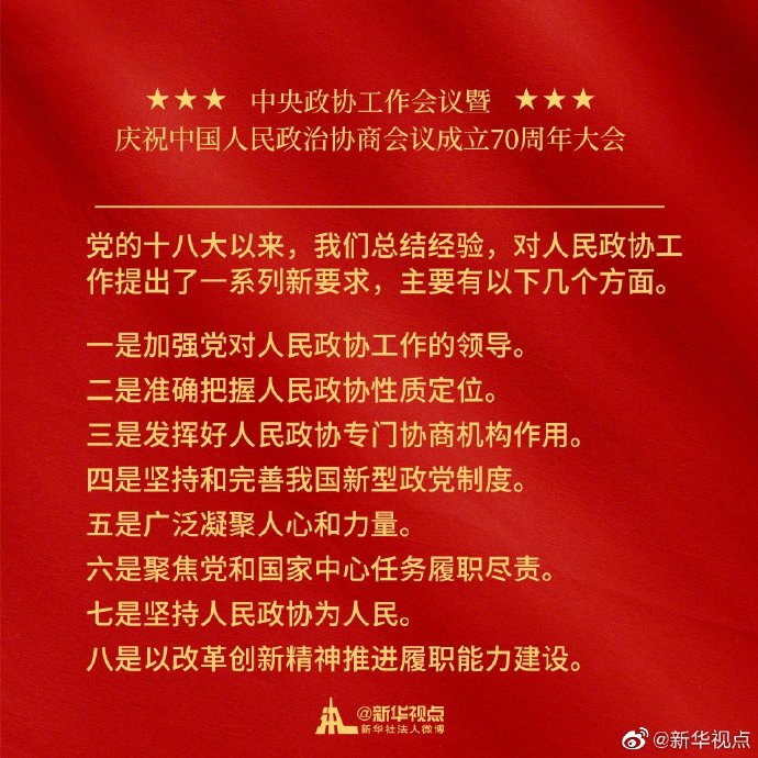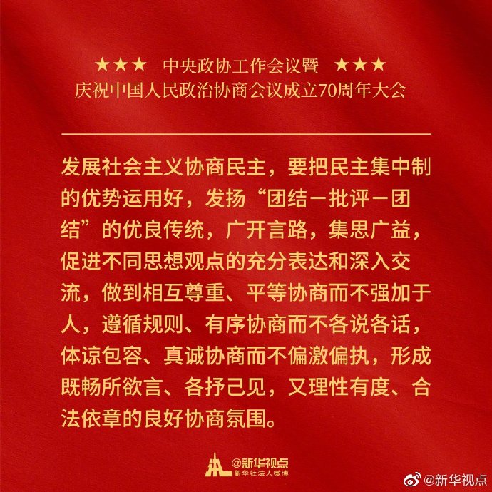 金句來了!習近平在中央政協工作會議暨慶祝中國人民政治協商會議成立70周年大會上的講話金句?? ?????