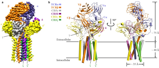 對(duì)此,文章審稿人的評(píng)價(jià)是:“該研究工作代表了細(xì)胞適應(yīng)性免疫的分子機(jī)理研究的一個(gè)重要里程碑。通過(guò)闡明第一個(gè)在膜上組裝的T細(xì)胞受體和其CD3共受體的結(jié)構(gòu),極大地增加了我們對(duì)T細(xì)胞識(shí)別抗原反應(yīng)的激活機(jī)制的理解。”
