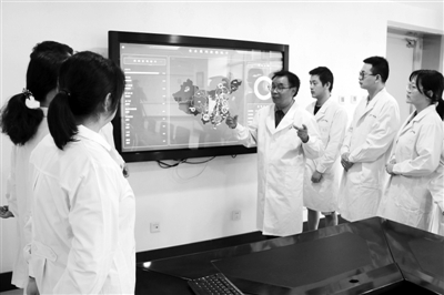 “安全藥問”研發(fā)團(tuán)隊(duì)在展示軟件使用情況 陳愛平攝