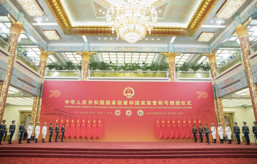 國家勛章和國家榮譽稱號頒授儀式29日上午在北京人民大會堂金色大廳隆重舉行。