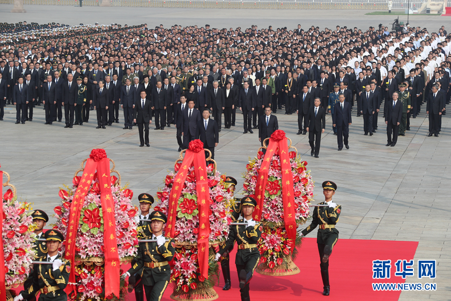 新華社北京9月30日電(記者楊維漢、羅沙)在慶祝中華人民共和國成立70周年之際,烈士紀念日向人民英雄敬獻花籃儀式30日上午在北京天安門廣場隆重舉行。習近平、李克強、栗戰書、汪洋、王滬寧、趙樂際、韓正、王岐山等黨和國家領導人,同各界代表一起出席儀式。