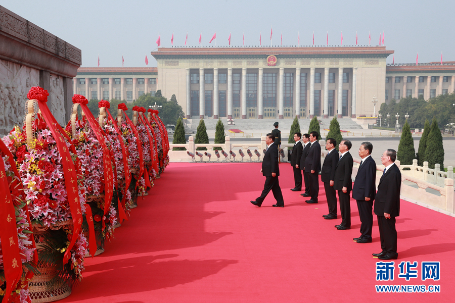 9月30日上午,習近平、李克強、栗戰書、汪洋、王滬寧、趙樂際、韓正、王岐山等黨和國家領導人來到北京天安門廣場,出席烈士紀念日向人民英雄敬獻花籃儀式。 新華社記者 申宏 攝