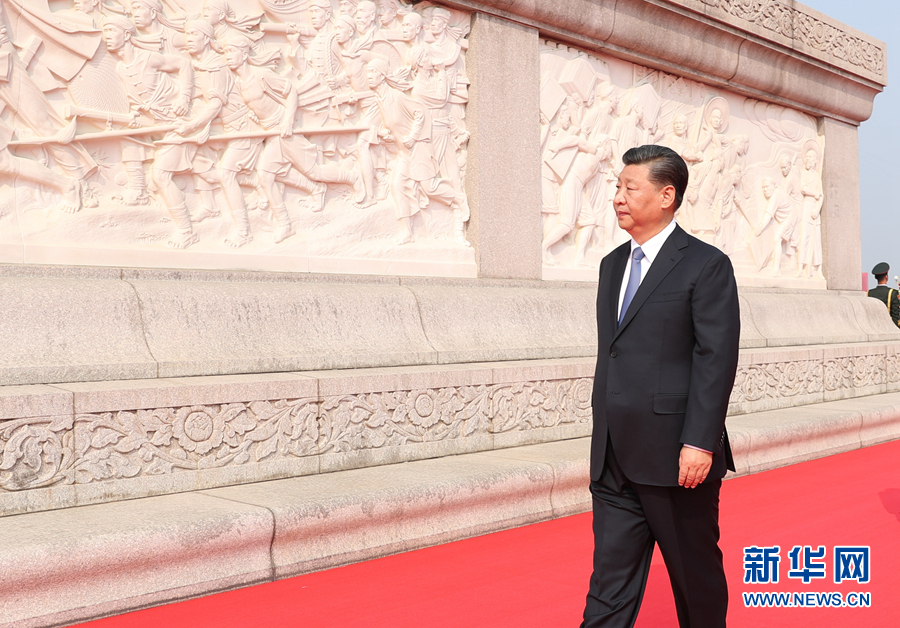 9月30日上午,習近平、李克強、栗戰書、汪洋、王滬寧、趙樂際、韓正、王岐山等黨和國家領導人來到北京天安門廣場,出席烈士紀念日向人民英雄敬獻花籃儀式。 新華社記者 姚大偉 攝