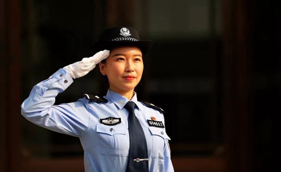 10月2日,遼寧錦州。女警在執勤。作者:往事如風
