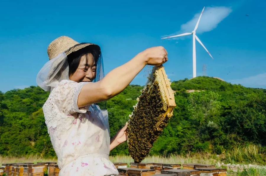 6月10日,山西晉城。一名蜂農收獲蜂蜜。作者:知易