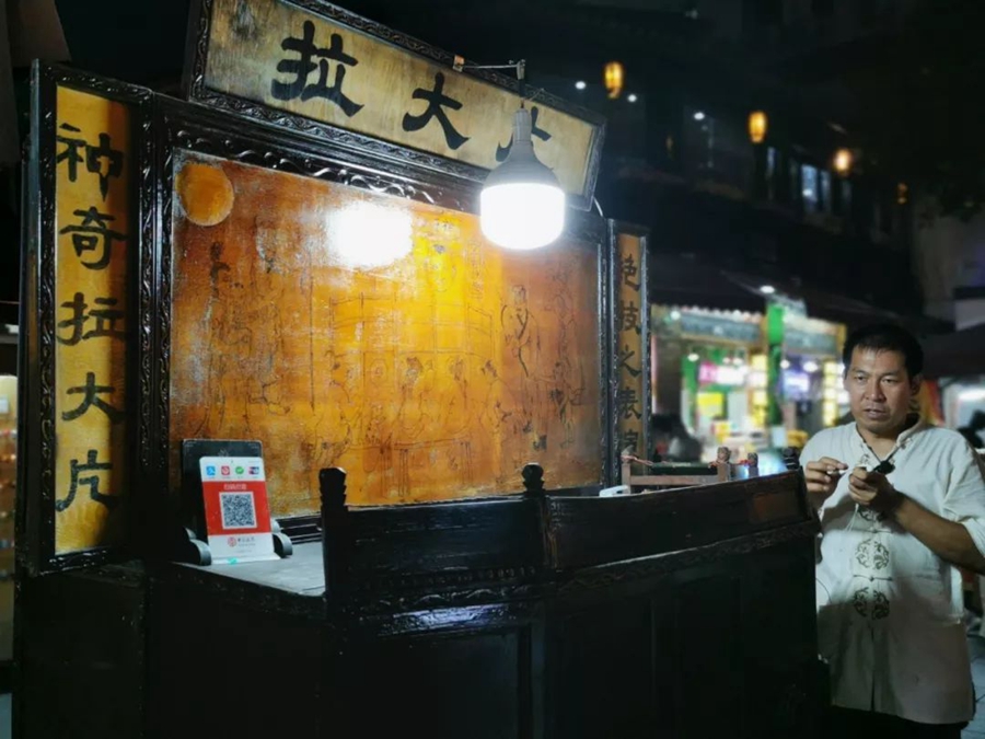 8月21日,浙江杭州。清河坊街的手藝人準備表演拉大片。作者:一匹馬