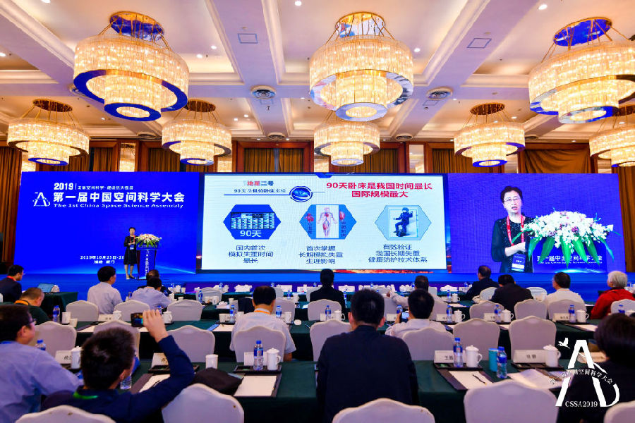 在近日于廈門舉行的第一屆中國空間科學大會上,中國載人航天工程航天員系統副總設計師李瑩輝介紹模擬失重實驗。中國空間科學學會供圖