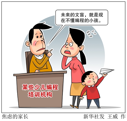 “未來(lái)的文盲,就是現(xiàn)在不懂編程的小孩”“不會(huì)寫(xiě)代碼就喪失了網(wǎng)絡(luò)生存能力”……近來(lái),大量引發(fā)家長(zhǎng)焦慮感的少兒編程廣告,充斥于自媒體和公共場(chǎng)所。“新華視點(diǎn)”記者調(diào)查發(fā)現(xiàn),繼奧數(shù)、英語(yǔ)之后,少兒編程成為最新教育培訓(xùn)熱點(diǎn)。少兒編程如此火爆,誰(shuí)是幕后推手?家長(zhǎng)是否應(yīng)該讓孩子學(xué)編程?