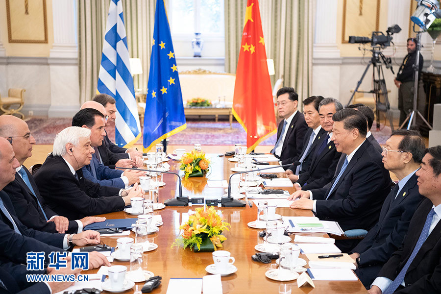 當地時間11月11日,國家主席習近平在雅典同希臘總統帕夫洛普洛斯會談。 新華社記者 姚大偉 攝