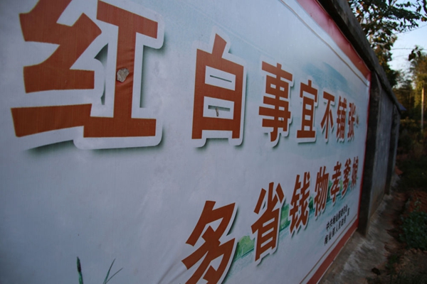 ▲湖南岳陽平江縣梅仙鎮石嶺村“治陋習、樹新風”標語(11月15日攝)。新華每日電訊記者 謝銳佳 攝