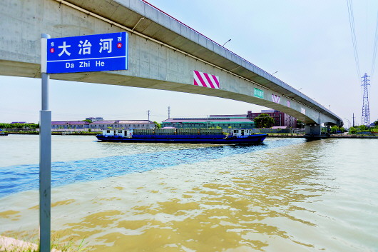 登上大治河工程養護船,記者從西閘到東閘走了一趟全程。船在河中行,景在岸邊走,大治河兩岸叢林茂密,綠化養護精細。寬闊的水面上,除了垃圾清運船,各類干散貨船也是來來往往,“突突突”的馬達聲不時傳來。“浙江嘉善”“江蘇連云港”“安徽廬江”……船舷上的船籍標識,顯現出長三角地區內河航運的通暢發達。
