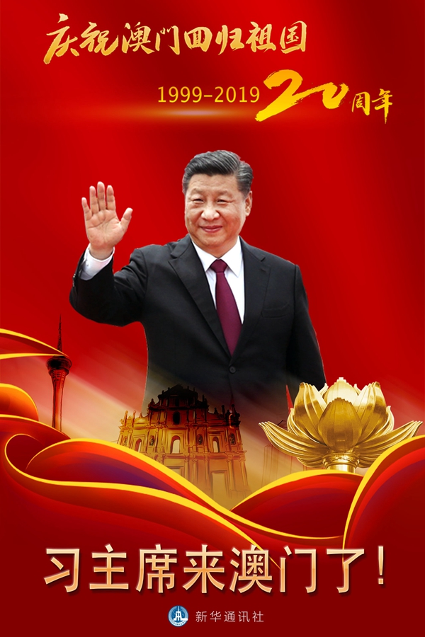 新華社快訊:中共中央總書(shū)記、國(guó)家主席、中央軍委主席習(xí)近平18日下午乘專(zhuān)機(jī)抵達(dá)澳門(mén),出席將于20日舉行的慶祝澳門(mén)回歸祖國(guó)20周年大會(huì)暨澳門(mén)特別行政區(qū)第五屆政府就職典禮,并視察澳門(mén)特別行政區(qū)。