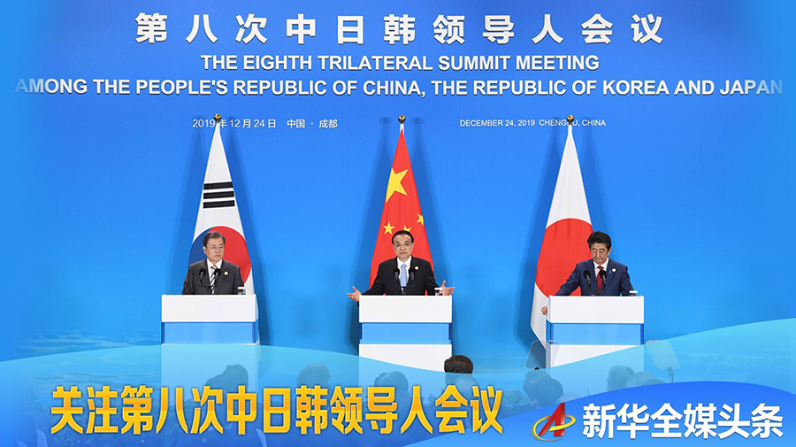 中日韓合作20周年之際,第八次中日韓領導人會議24日在四川成都舉行。會議發表《中日韓合作未來十年展望》,通過了“中日韓+X”早期收獲項目清單等成果文件,三國領導人在諸多議題上達成廣泛共識。