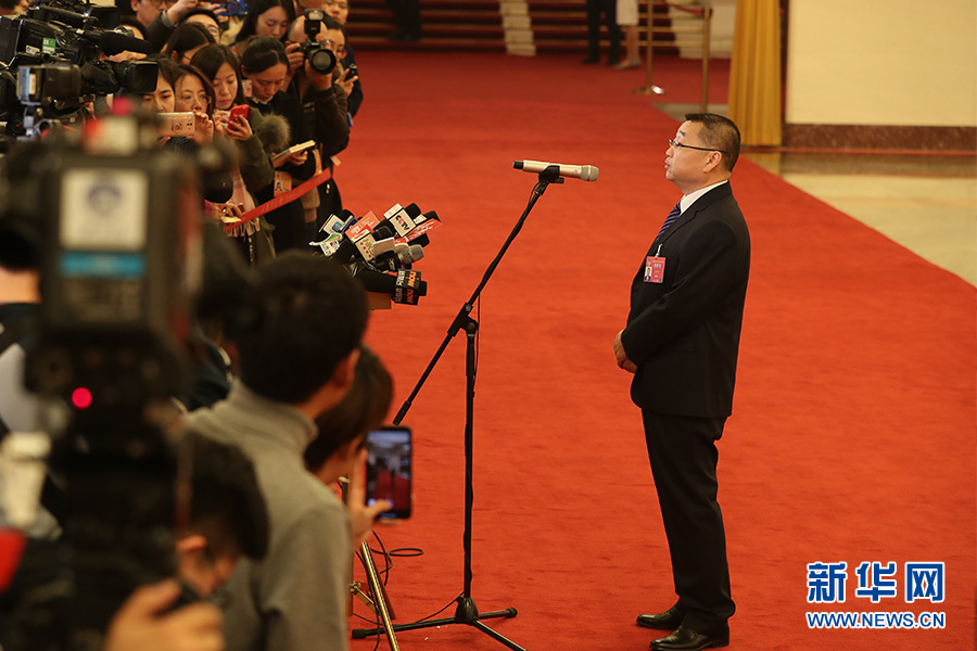 3月3日下午,全國政協(xié)十三屆二次會(huì)議開幕會(huì)結(jié)束后,2019年全國兩會(huì)“部長通道”在人民大會(huì)堂正式開啟,部長們?cè)谶@里直面熱點(diǎn),回應(yīng)關(guān)切。圖為國家醫(yī)療保障局局長胡靜林接受采訪。新華網(wǎng)/中國政府網(wǎng) 陳杰 攝