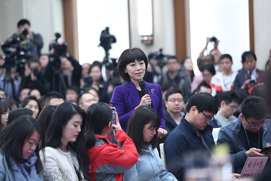 十三屆全國人大二次會議3月4日上午11時15分在人民大會堂新聞發布廳舉行新聞發布會,由大會發言人就大會議程和人大工作相關的問題回答中外記者提問。圖為中央廣播電視總臺央視記者提問。新華網/中國政府網 陳杰 攝