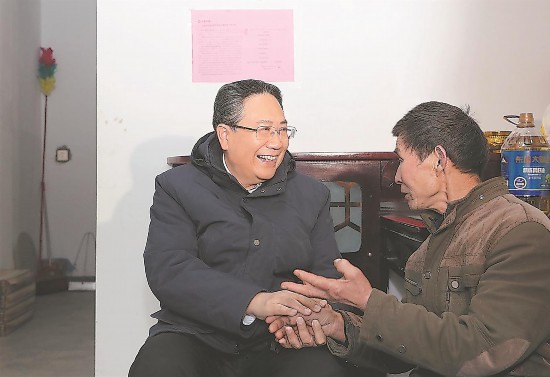 2月2日,安徽省委書記李錦斌深入六安市金寨縣花石鄉大灣村村民陳澤申家中走訪慰問,與他親切交談。記者 徐國康 攝? 來源:安徽日報