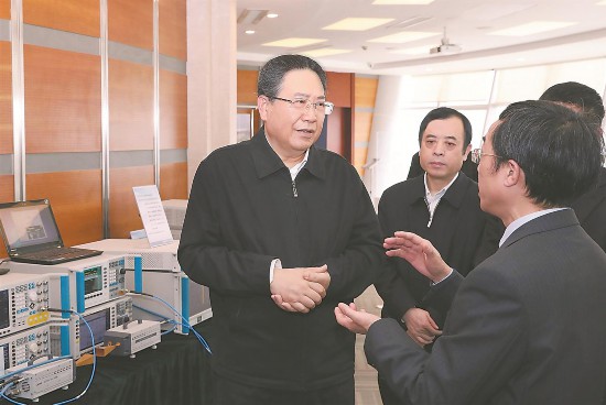 2月20日,安徽省委書記李錦斌來到中建材蚌埠玻璃工業設計研究院,在展示大廳參觀蚌埠市科技創新代表性企業產品。記者 徐國康 攝? 來源:安徽日報