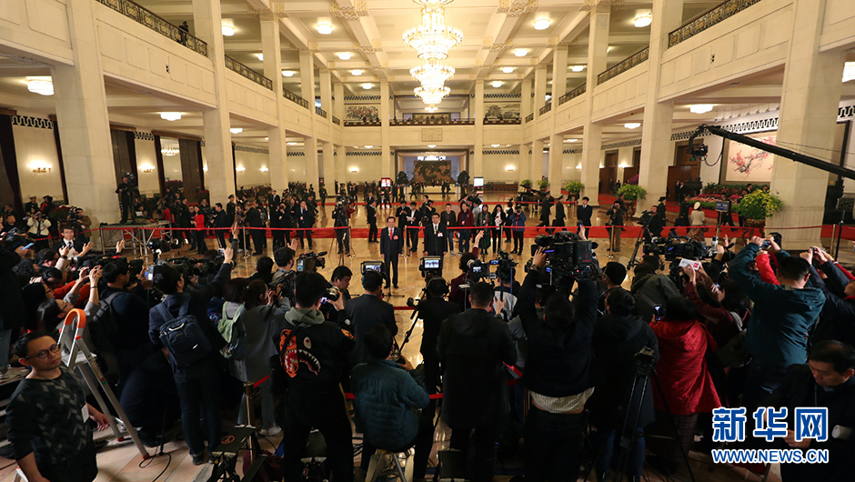 ? 3月5日,第十三屆全國人民代表大會第二次會議在北京人民大會堂開幕。這是全國人大代表在“代表通道”接受采訪。新華網/中國政府網 陳杰 攝