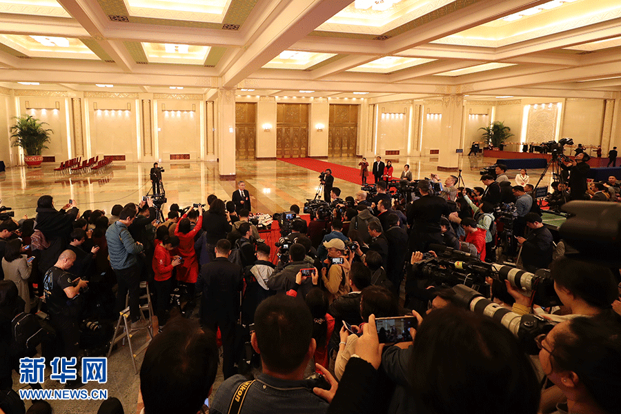 3月5日,第十三屆全國(guó)人民代表大會(huì)第二次會(huì)議在北京人民大會(huì)堂開(kāi)幕。這是記者在“部長(zhǎng)通道”采訪。新華網(wǎng)/中國(guó)政府網(wǎng) 劉廈攝