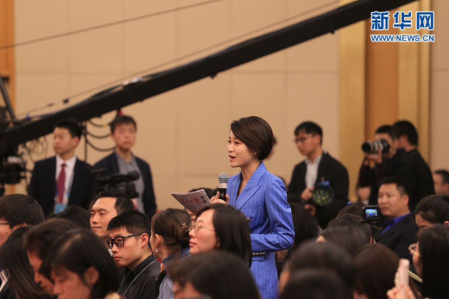 全國政協十三屆二次會議3月5日15:00在梅地亞中心多功能廳舉行記者會,邀請5位全國政協委員就“打贏防范化解重大風險、精準脫貧、污染防治三大攻堅戰”回答記者提問。圖為農民日報記者提問。新華網/中國政府網 陳杰 攝