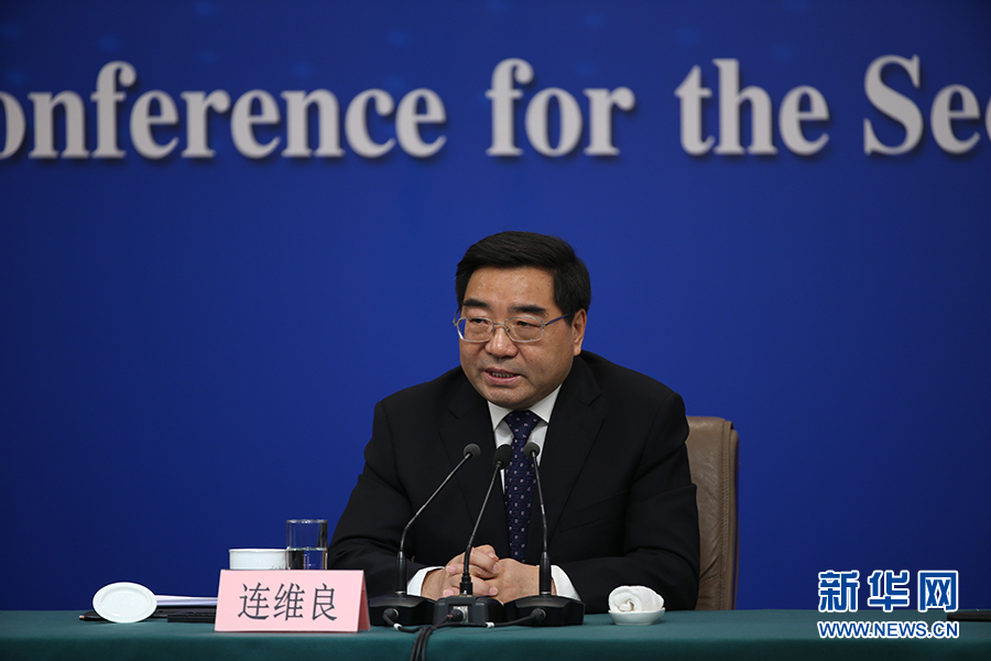 十三屆全國人大二次會議新聞中心于3月6日(星期三)上午10時在梅地亞中心新聞發布廳舉行記者會,邀請國家發展改革委主任何立峰,副主任寧吉喆、連維良就“大力推動經濟高質量發展”相關問題回答中外記者的提問。圖為連維良回答記者提問。新華網/中國政府網 劉廈 攝