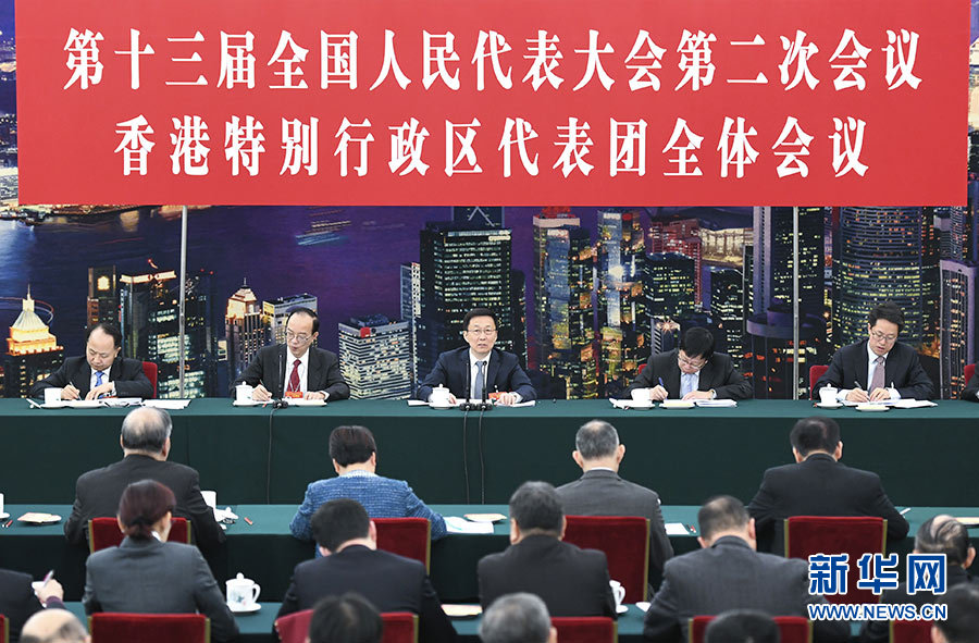 3月6日,中共中央政治局常委、國務院副總理韓正參加十三屆全國人大二次會議香港代表團的審議。 新華社記者 張領 攝