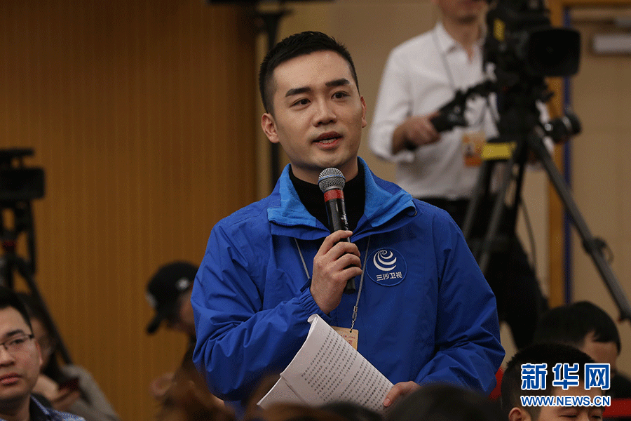全國政協十三屆二次會議3月6日下午在梅地亞兩會新聞中心舉行記者會,邀請5位全國政協委員就“優化營商環境、促進民營經濟高質量發展”回答記者提問。圖為三沙衛視記者提問。新華網/中國政府網?馬娟 攝