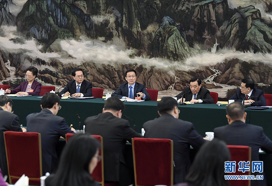 3月7日,中共中央政治局常委、國務(wù)院副總理韓正參加十三屆全國人大二次會(huì)議浙江代表團(tuán)的審議。 新華社記者 高潔 攝