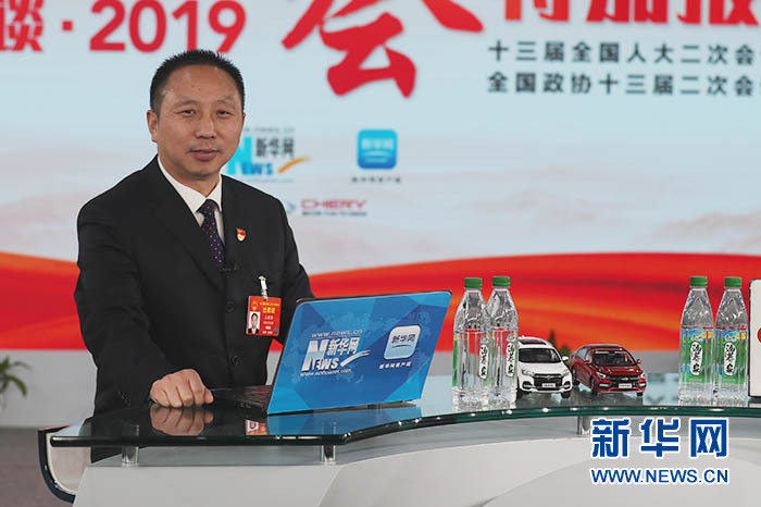 全國(guó)人大代表、東風(fēng)商用車(chē)有限公司車(chē)輛工廠(chǎng)調(diào)檢一車(chē)間“王濤班”班長(zhǎng)王建清做客新華網(wǎng)2019全國(guó)兩會(huì)特別報(bào)道。新華網(wǎng)?郭小天 攝
