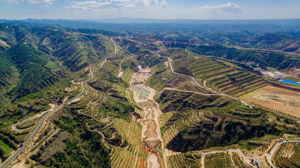 無人機(jī)視角下的綠染呂梁山。(資料圖)