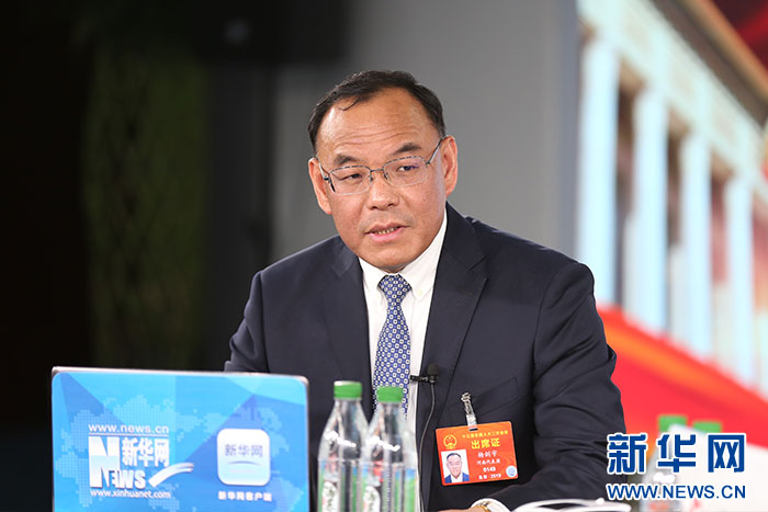 3月9日,全國(guó)人大代表,中國(guó)移動(dòng)通信集團(tuán)河南有限公司黨委書(shū)記、董事長(zhǎng)、總經(jīng)理?xiàng)顒τ钭隹托氯A網(wǎng)2019全國(guó)兩會(huì)特別報(bào)道。 新華網(wǎng) 毛嘉煒 攝