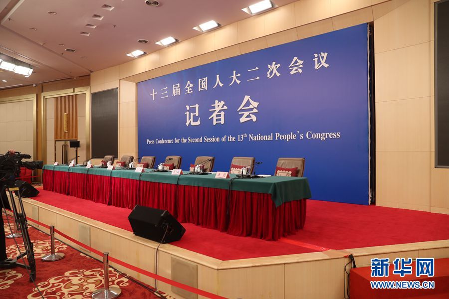 十三屆全國人大二次會議新聞中心3月9日在梅地亞中心新聞發布廳舉行記者會,邀請全國人大農業與農村委員會主任委員陳錫文、全國人大財政經濟委員會副主任委員烏日圖、全國人大常委會法制工作委員會副主任劉俊臣、全國人大常委會法制工作委員會副主任許安標、全國人大環境與資源保護委員會委員程立峰就“人大立法工作”相關問題回答記者提問。圖為記者會現場。新華網/中國政府網 陳杰 攝