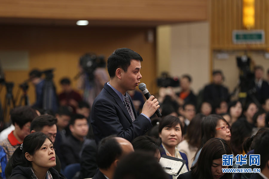 全國政協十三屆二次會議3月10日(星期日)上午8:45在梅地亞兩會新聞中心舉行記者會,邀請5位政協委員就“新時代政協履職”回答記者提問。新華網、中國政府網進行現場直播。圖為中央廣播電視總臺央視記者提問。新華網/中國政府網 劉廈攝