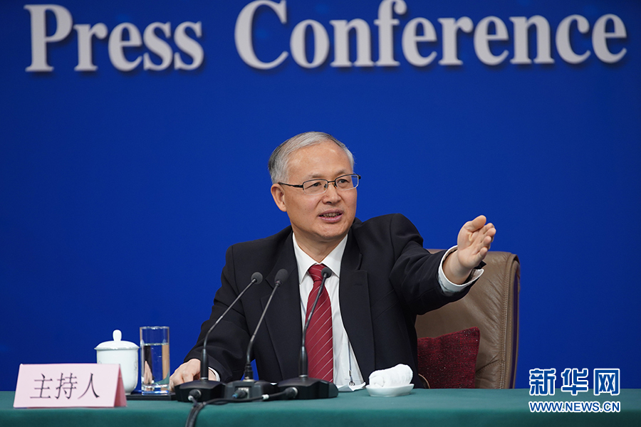 十三屆全國(guó)人大二次會(huì)議新聞中心于3月11日(星期一)15時(shí)在梅地亞中心新聞發(fā)布廳舉行記者會(huì),邀請(qǐng)生態(tài)環(huán)境部部長(zhǎng)李干杰就“打好污染防治攻堅(jiān)戰(zhàn)”相關(guān)問(wèn)題回答中外記者提問(wèn)。圖為記者會(huì)主持人。新華網(wǎng)/中國(guó)政府網(wǎng) 劉廈 攝