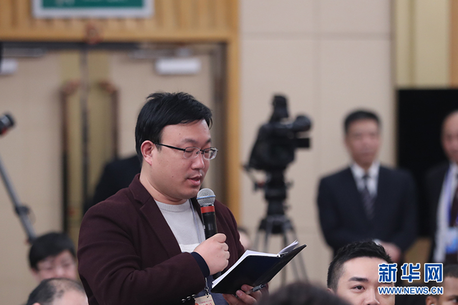 十三屆全國人大二次會議新聞中心于3月11日(星期一)15時在梅地亞中心新聞發布廳舉行記者會,邀請生態環境部部長李干杰就“打好污染防治攻堅戰”相關問題回答中外記者提問。圖為法制日報全媒體記者提問。新華網/中國政府網 劉廈 攝