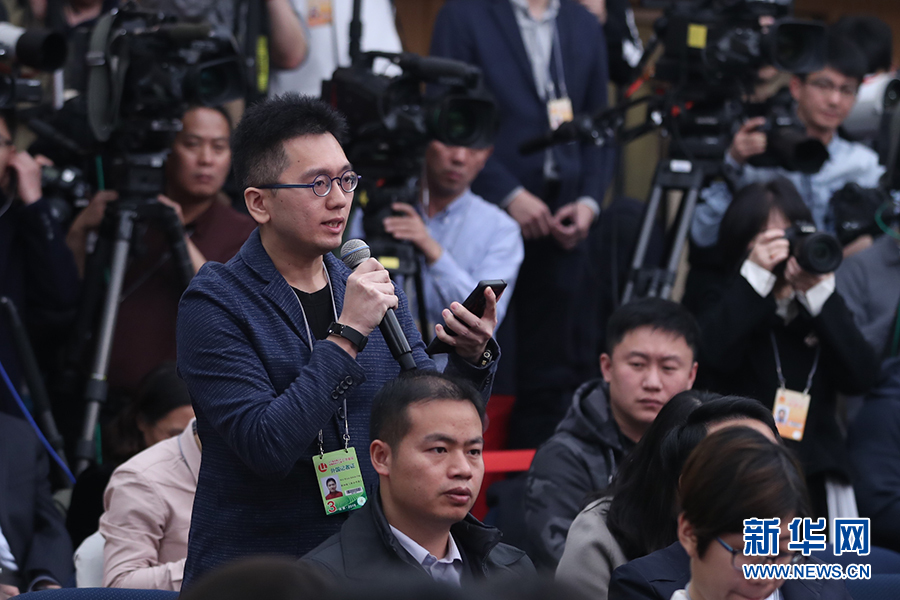 十三屆全國人大二次會議新聞中心3月11日(星期一)10時30分在梅地亞中心新聞發布廳舉行記者會,邀請國家市場監督管理總局局長張茅、國家藥品監督管理局局長焦紅、國家知識產權局局長申長雨就“加強市場監管 維護市場秩序”相關問題回答中外記者提問。圖為新加坡聯合早報記者提問。新華網/中國政府網 劉廈 攝