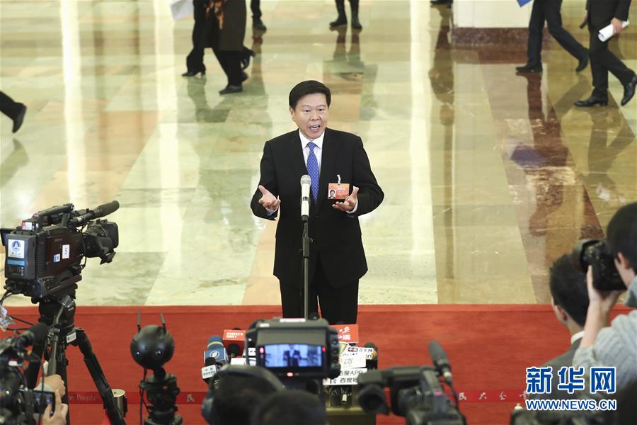 3月12日,十三屆全國人大二次會議在北京人民大會堂舉行第三次全體會議。這是國家稅務總局局長王軍在“部長通道”接受采訪。 新華社記者殷剛攝