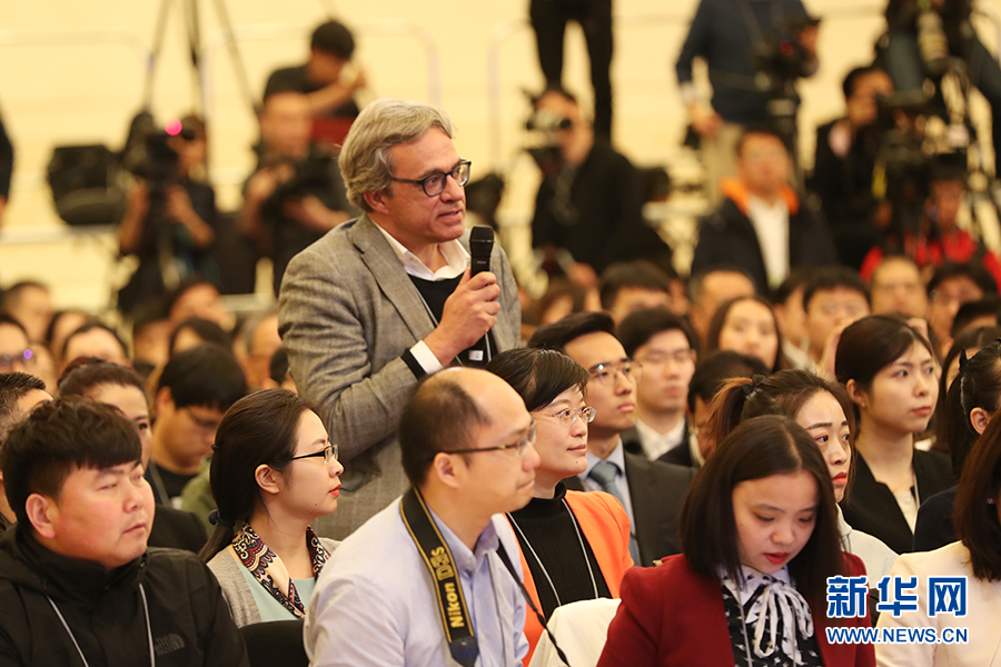 3月15日上午十三屆全國(guó)人大二次會(huì)議閉幕后,國(guó)務(wù)院總理李克強(qiáng)在人民大會(huì)堂三樓金色大廳會(huì)見(jiàn)采訪十三屆全國(guó)人大二次會(huì)議的中外記者并回答記者提出的問(wèn)題。圖為西班牙記者提問(wèn)。新華網(wǎng)/中國(guó)政府網(wǎng)?陳杰 攝