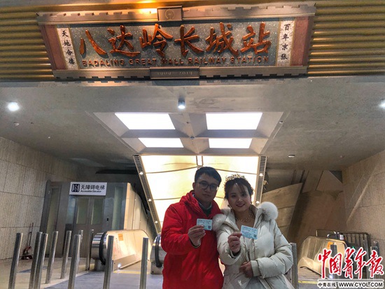 最后檢查完八達嶺長城站的防撞條、電梯等細節后,手機屏幕的時鐘跳到了深夜1點,32歲的胡維急忙趕回不遠處的員工宿舍。那里,妻子肖雅萍正在屋里試婚紗。