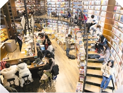 放眼望去,燈火通明的書店在深夜里依然座無虛席。有人緩緩踱步,不時翻翻看看;有人啜著咖啡,面對電腦手指翻飛。記者沿著樓梯拾級而上,發現還有一些顧客或坐或臥,或淺聲交談,或專心閱讀。