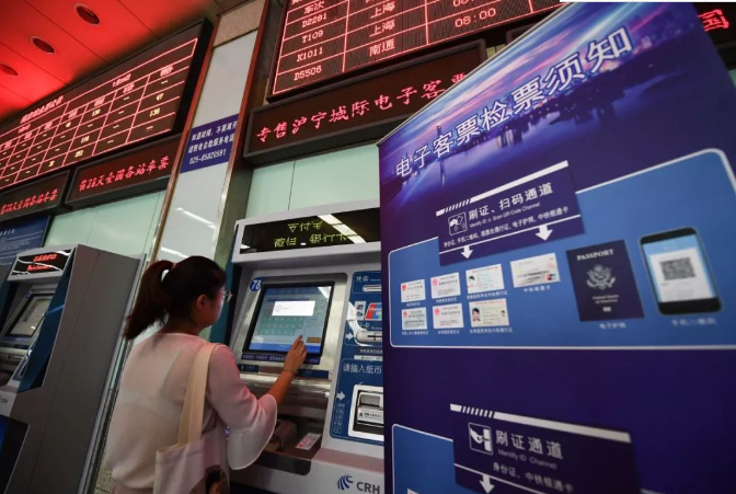 一名旅客在自助售票機購買滬寧城際電子客票 李響 攝