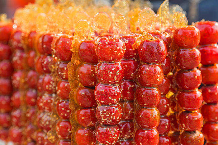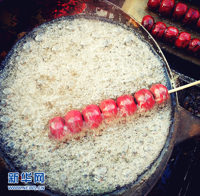 一串串山里紅、麻山藥、黑棗、山藥蛋、荸薺、橘子瓣、草莓