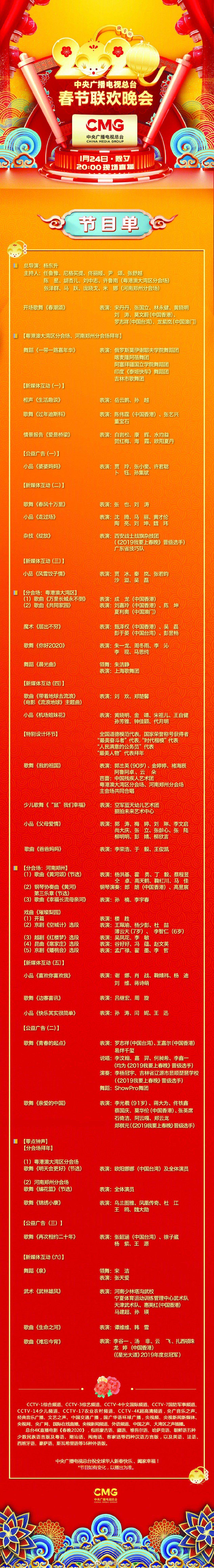 1月24日,《2020年春節聯歡晚會》新節目單出爐,將臨時增加疫情防控節目——情景報告《愛的橋梁》,主持人白巖松、康輝、水均益、賀紅梅、海霞、歐陽夏丹加盟。(任思雨)
