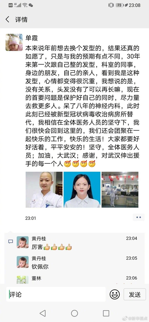 用我及腰長發(fā),換你健康平安:武漢人民醫(yī)院出了個“光頭護(hù)士”-新華網(wǎng)