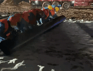 △河南駐馬店的劉海龍師傅,今年沒有回家,自愿到工地來支援!他說自己雖是白班,但工地上沒有具體上班和下班的時間,有事情就要去做?!拔医裉斓娜蝿帐强醋o這個修路用的定位旗,不能讓人碰倒。我在這里沒有認識的人,我是自愿過來的”